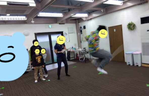 縄跳びでは苦手そうにしている状況も見受けられましたが、跳んでやるという意欲が勝り、一生懸命頑張って最終的には跳ぶことができていました。
