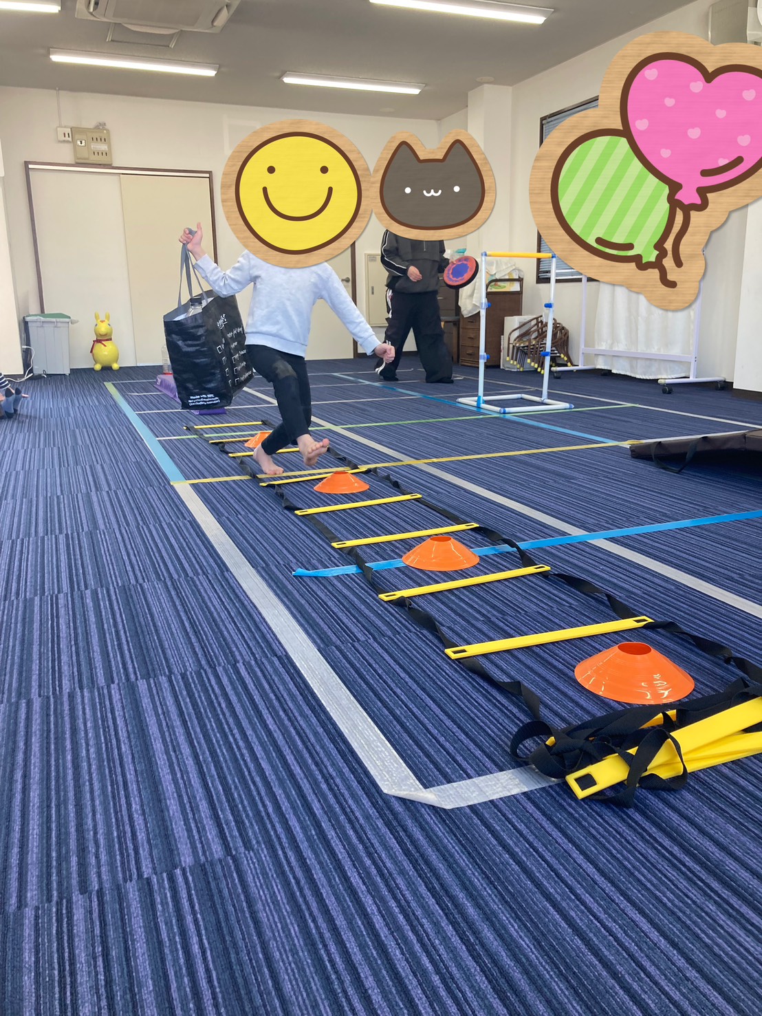 今回は「持てるかな?お買い物ゲーム」と「ビニールテープで風船運び」の様子を