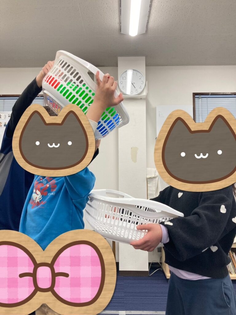 受けるお友だちも、カゴを左右に調節しながら、上手に受け取ることが出来ました。