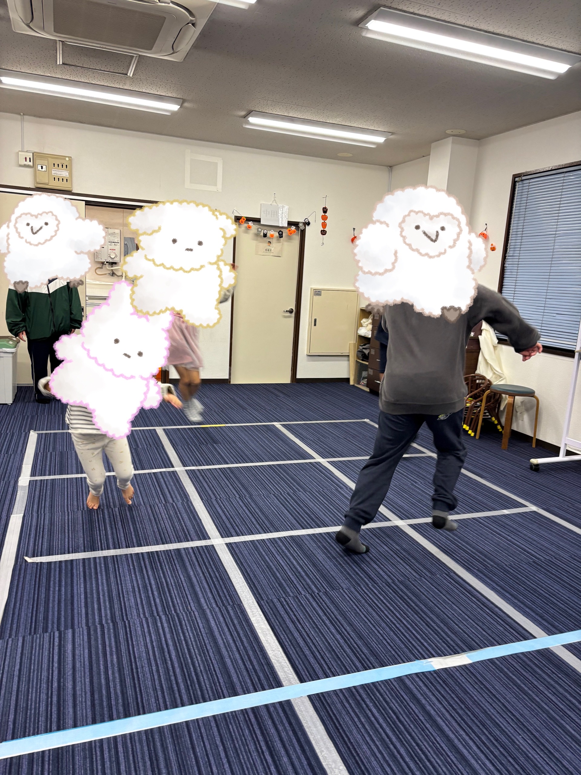 こちらは放デイさんの活動の様子で9マス鬼ごっこを行いました。