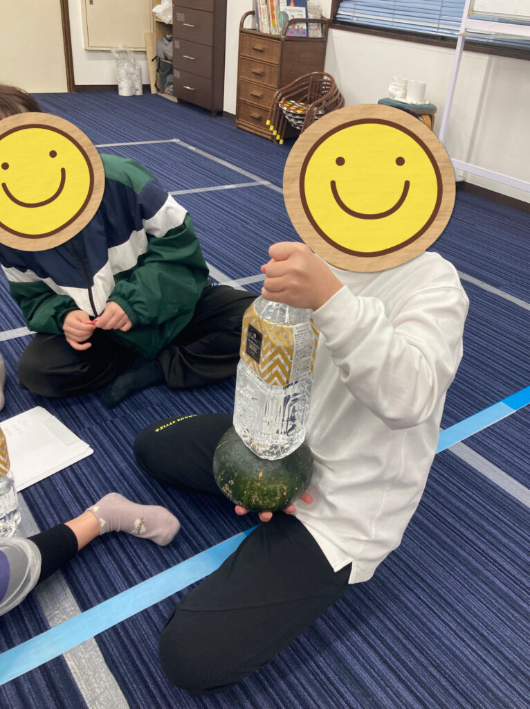 皆、重さに興味深々な様子で、何度もカボチャとペットボトルを持ち上げて確認をしていました。