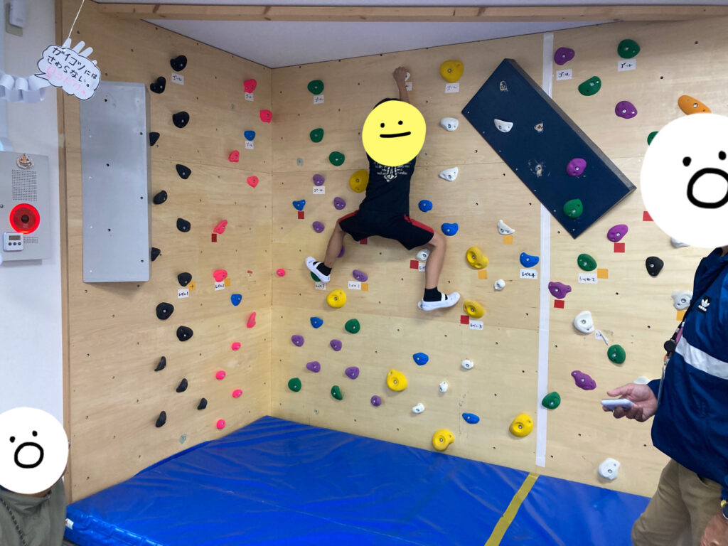 この日も課題を全てクリアしたお友だちが、三つの壁を端から端まで横に移動していくタイムトライアルに繰り返し挑戦して頑張っていました💪。