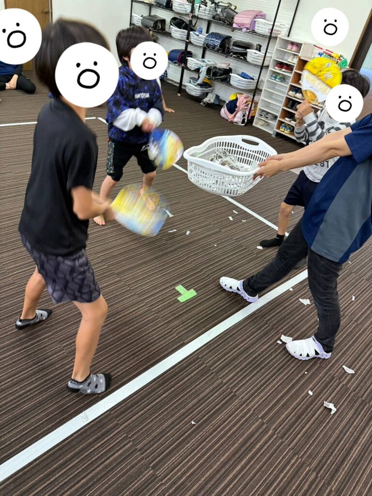 前半の、紙コップをあおいで移動させる活動では、力加減が重要です✨