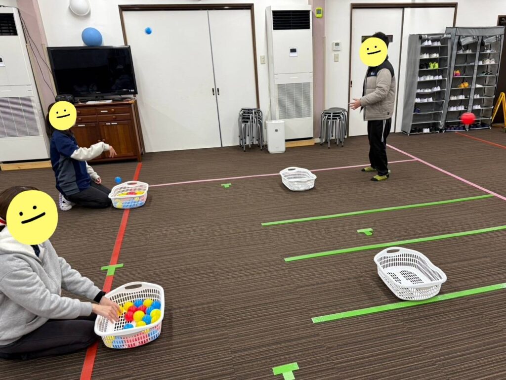 こちらは、2.カラーボールの色を見て『掴む』『避ける』『打つ』! の様子です。