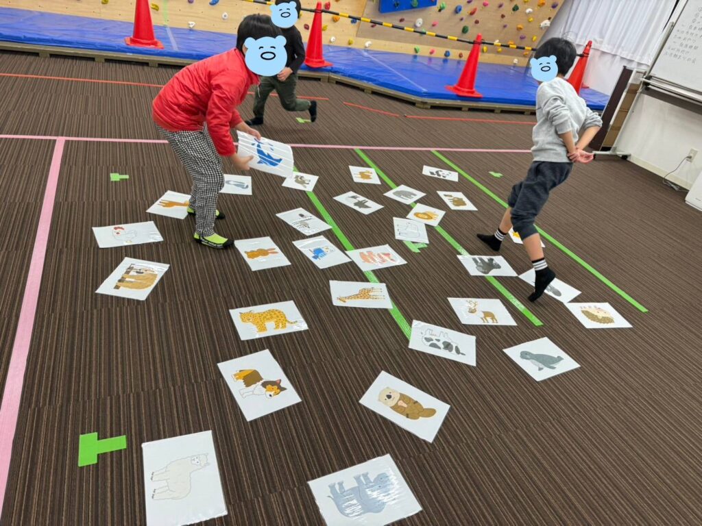 こちらは、1.スタッフの伝えた動物のカードを素早く見つけよう! の様子です。