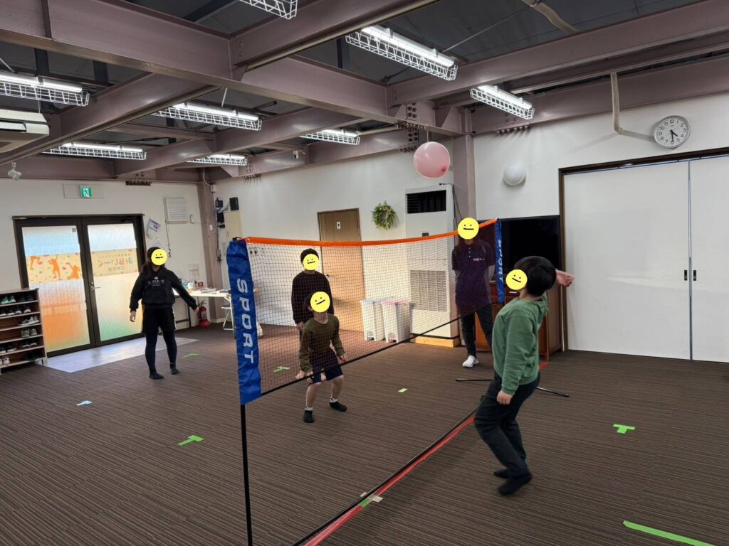顔を上にあげながら風船を打ったり、コート内を風船を落とさないように動き、汗をかくくらい身体を動かすこともできました✨
