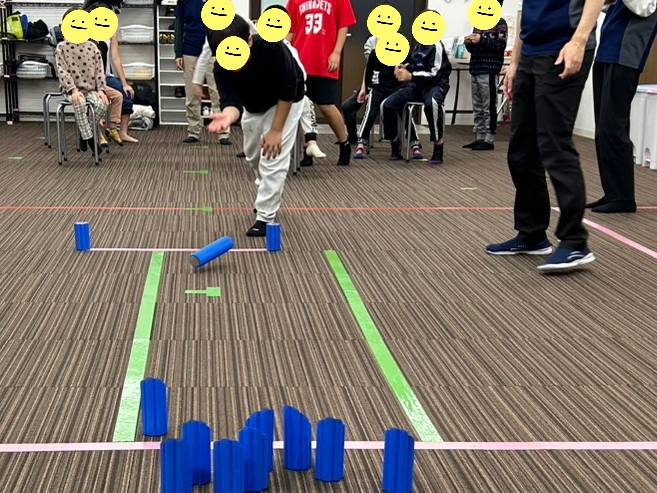 最初は勢いよく転がしていましたが、点数が50点に近づいてくると、チームでどのピンを狙おうなど考えながらモルックを転がしたり、投げて取り組んでいました😄