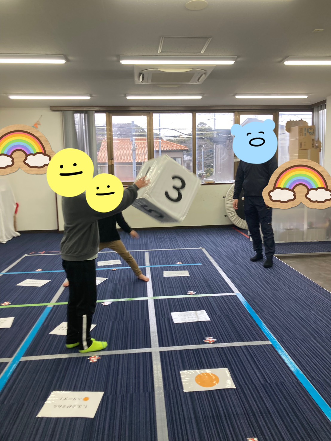 みんなで節分すごろくでは、巨大サイコロを使って人間すごろくを行いました!