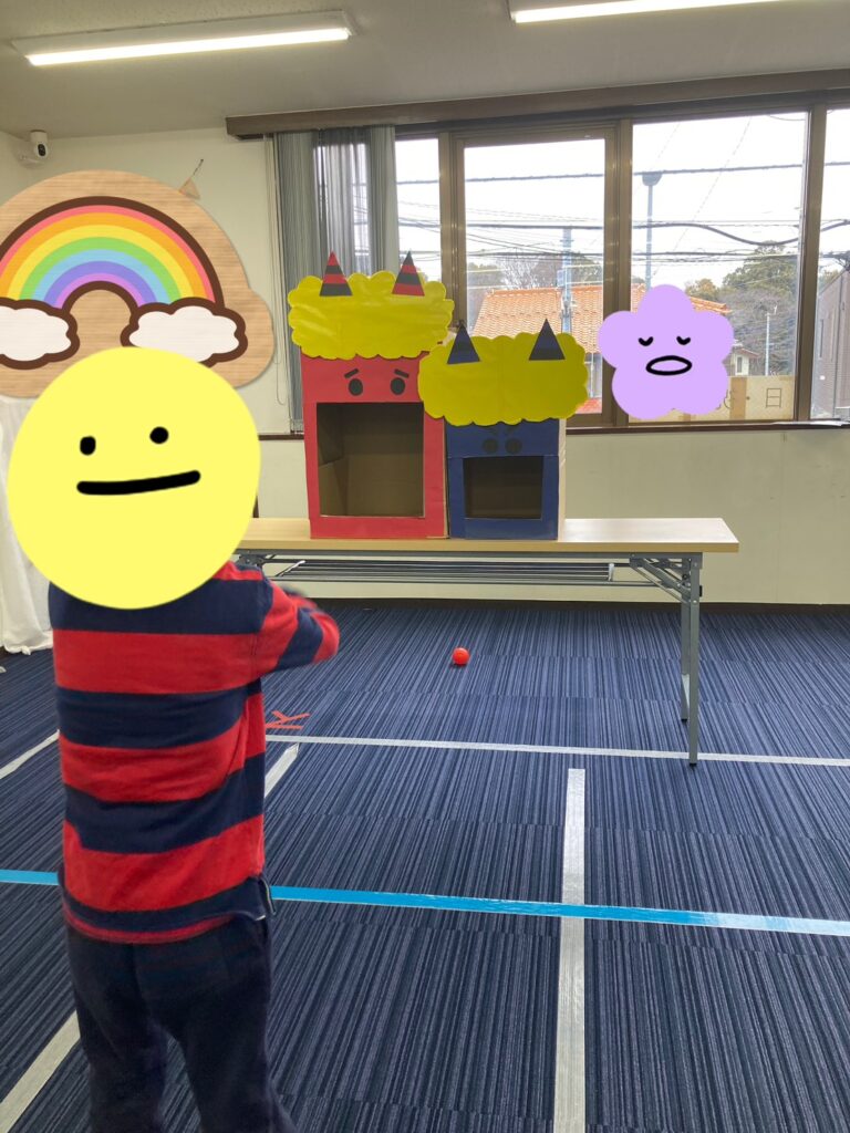 鬼の口を狙え的当てでは、大きく開いた鬼の口へボールを投げ入れてもらいました👹