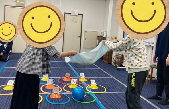 また、こちらの活動はボールの大きさやキャップの形状がそれぞれ少しずつ違うので、ボールを置く時の力加減や物を立体的に見る力を伸ばすことができるメニューでした💪
